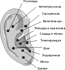 Ниша между хрящевой перепонкой и внешней раковиной уха. Весь организм пронизан периферическими нервами. Причиной заболеваний являются не нарушение обмена веществ, не переохлаждение, не вирусы, а срыв механизмов саморегуляции, которые контролируется вегетативной нервной системой. Эта система ответственна как за возникновение многих болезней, так и за их исчезновение.