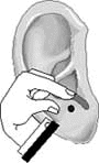 Удобно сядьте. Указательными пальцами обеих рук, одновременно на обоих ушных раковинах, нажимайте на выбранную точку пульсирующими движениями до легкой приятной боли (большие пальцы в это время поддерживают ухо с внешней стороны.